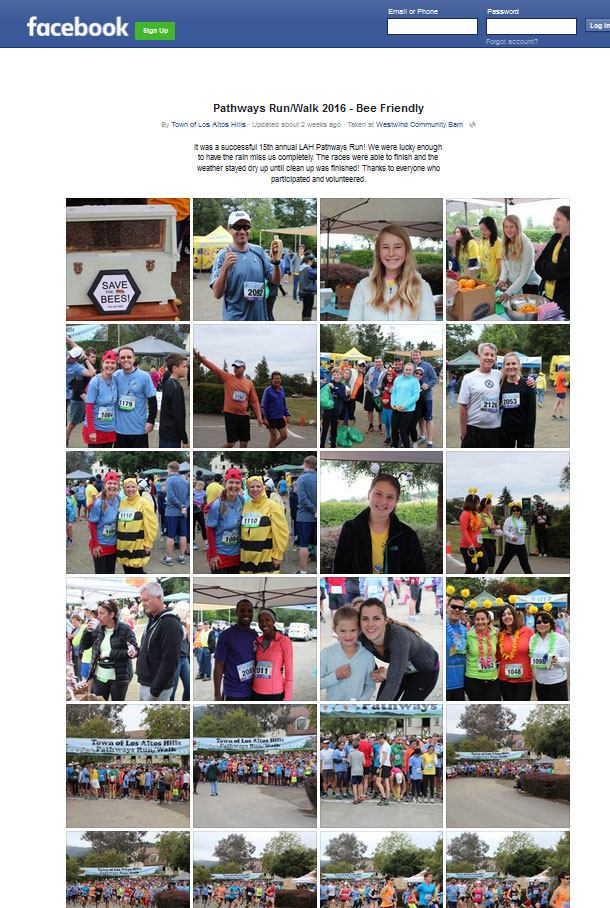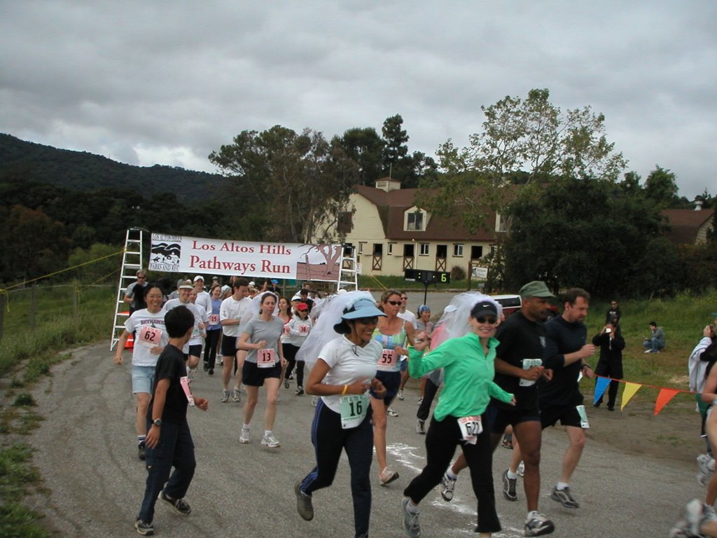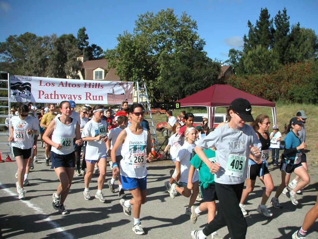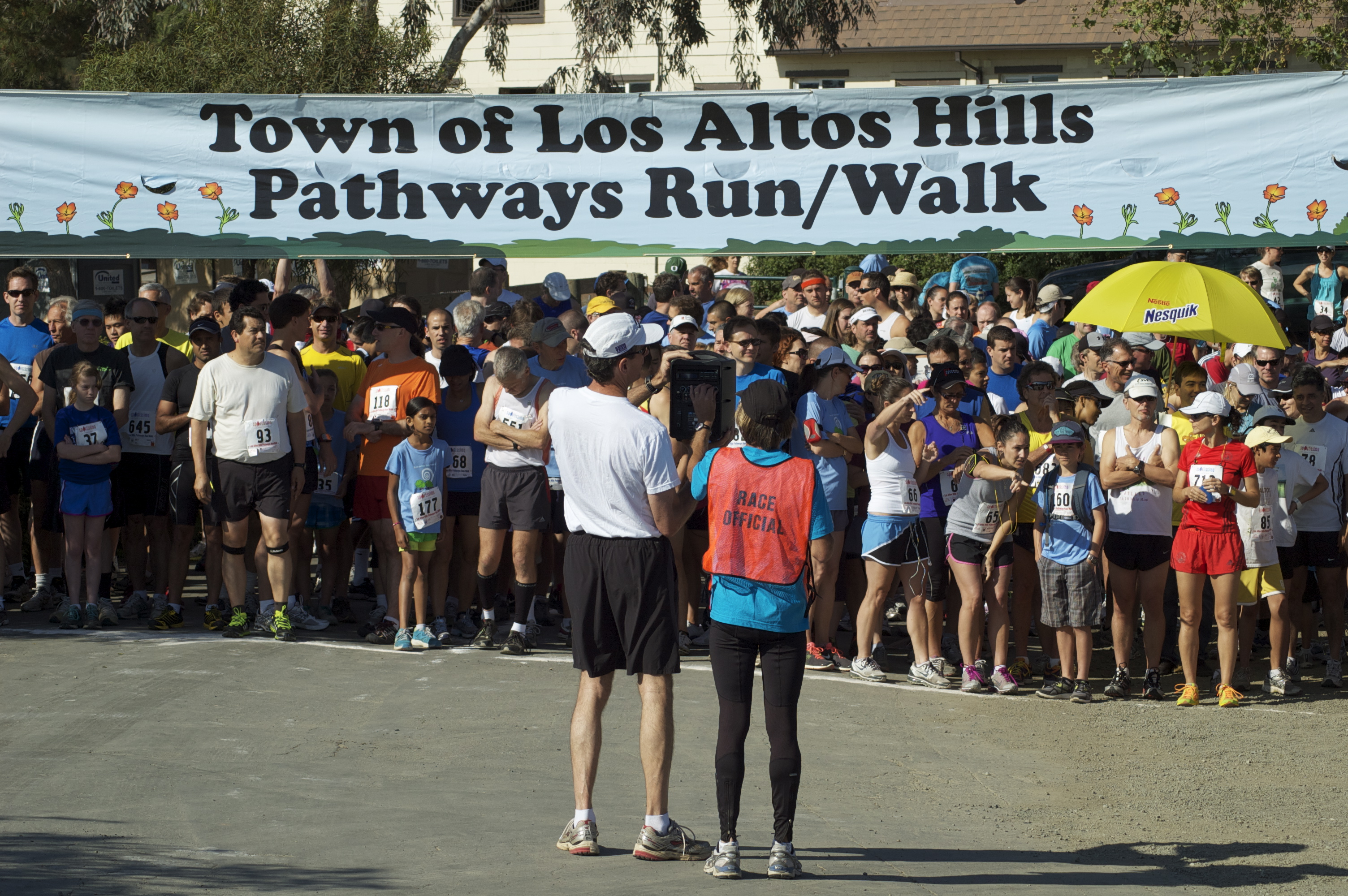 The Los Altos Hills Pathways Run – race was started in 2002. Around this time, the LAH Pathways master plan was being updated by the town. It was a very contentious topic for the town as a majority of the Town Council at that time were on track to significantly degrade the future of the master planned pathways system for LAH. It was a rough and ugly time for the town as town wide hearings for the pathways planning included overflow rooms and buildings to host the meetings for hundreds. Wild meetings included everything from bomb threats and threats that required clearing the chambers for votes on the matter could be taken. The town council approved to move forward with a degraded pathways master plan going forward. But within 1 month, a referendum was created by pathway advocates, collected the required number of signatures that forced the town to reconsider/vote on the previously passed motion. Due to the exact timing of the previous council vote, brand new council members were elected removing those council members who voted for the original motion and the timing of referendum required action, the newly seated council members undid the previous council members passing of the motion and restored our master planned pathways system back on track.